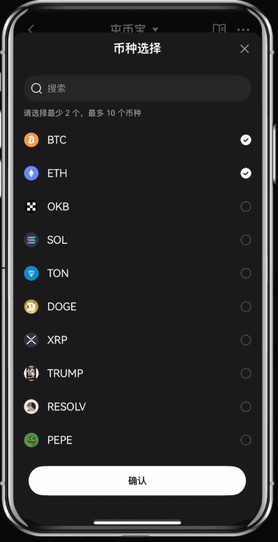 5、可自由选择币种搭配,最多支持10个币种
