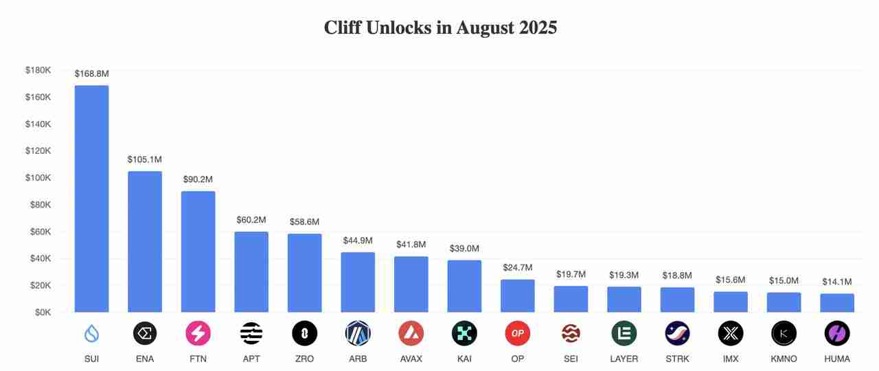 悬崖解锁意味着代币一次性全部释放,可能对价格造成即时冲击。2025年8月将迎来多起重大事件: