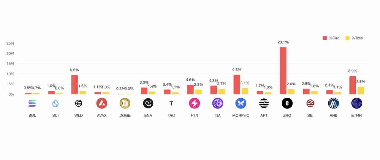 • ETHFI ($ETHFI) 将解锁4984.9万美元,占比8.93%。这一释放可能对短期价格构成压力,市场将密切关注利益相关者的反应。