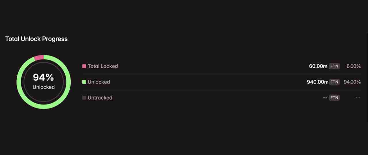 Fasttoken ($FTN) 解锁9020万美元,占比4.64%。